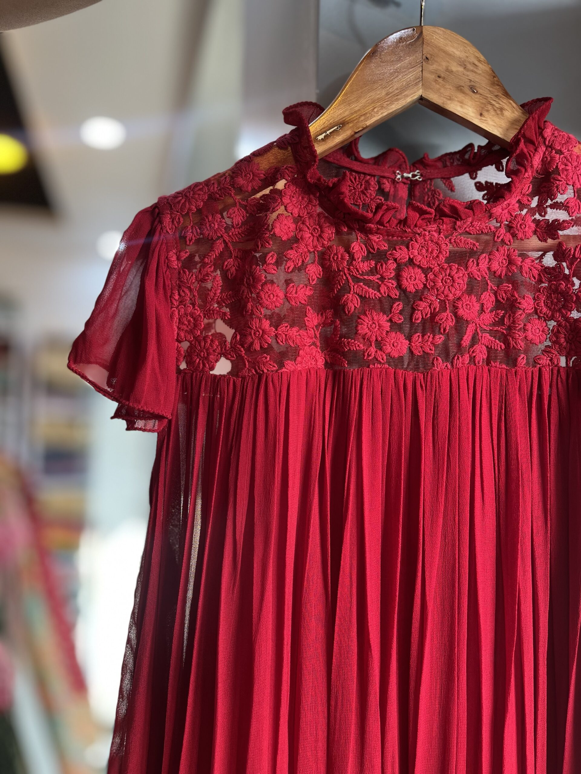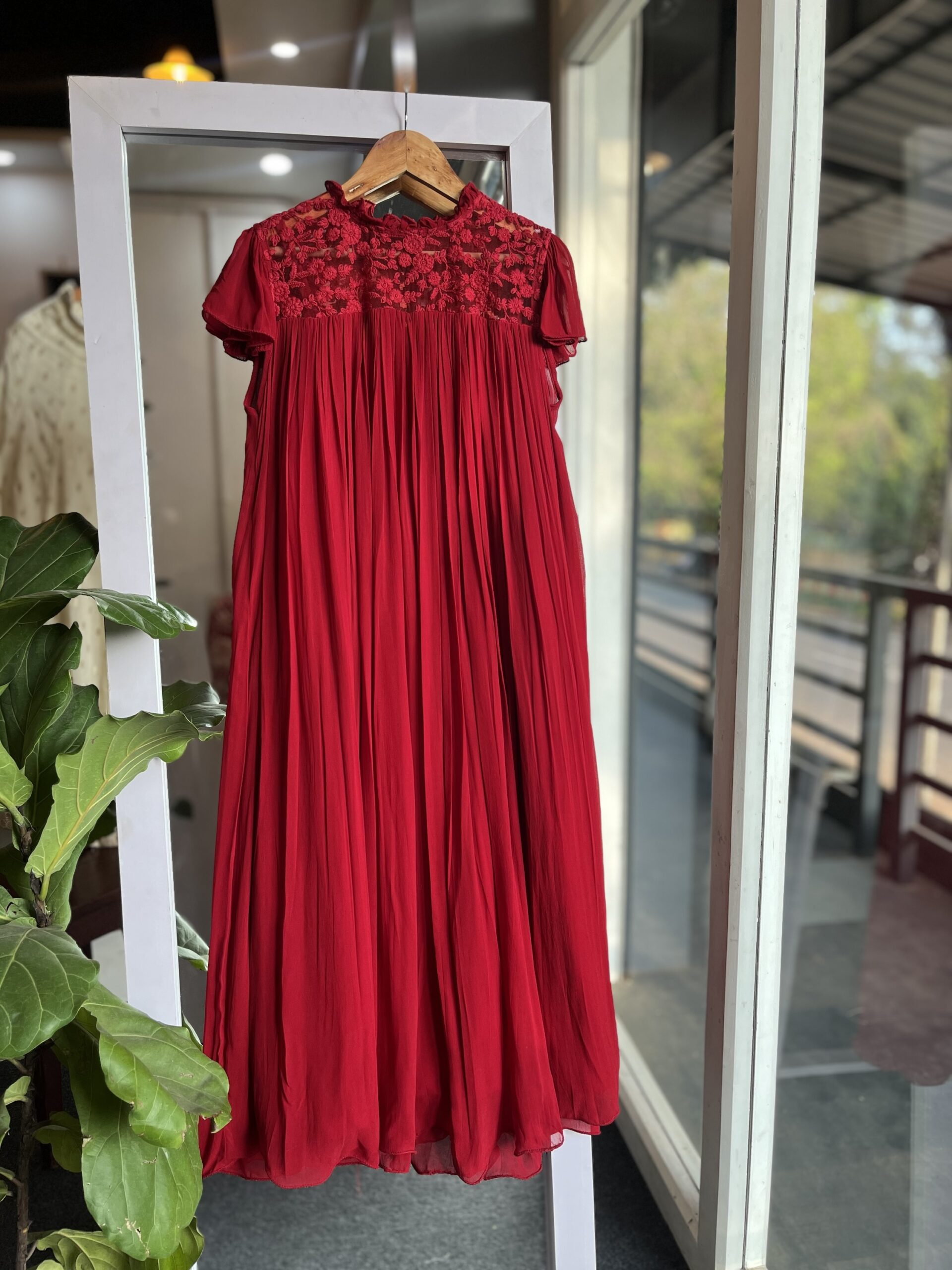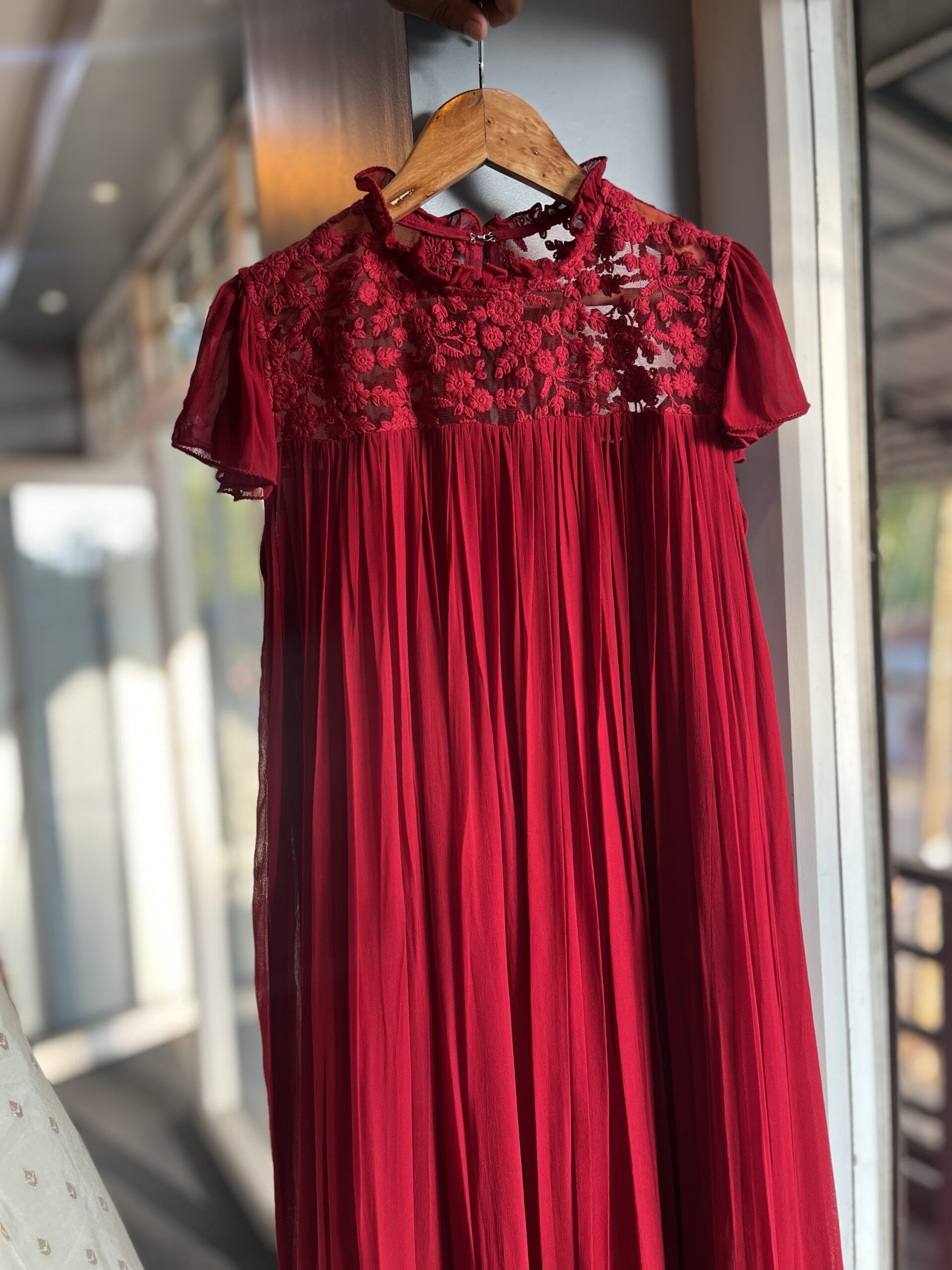 Maroon-red colour viscous georgette frock along with inner