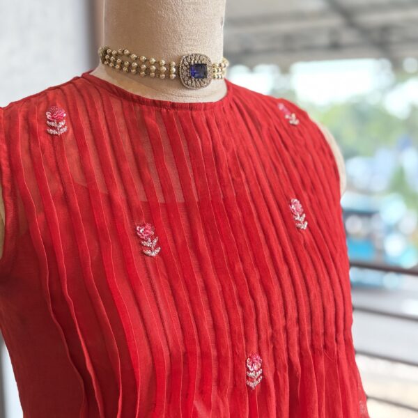 Blush pink color satin banarasi panel skirt with pure raw silk blouse embellished with hand work