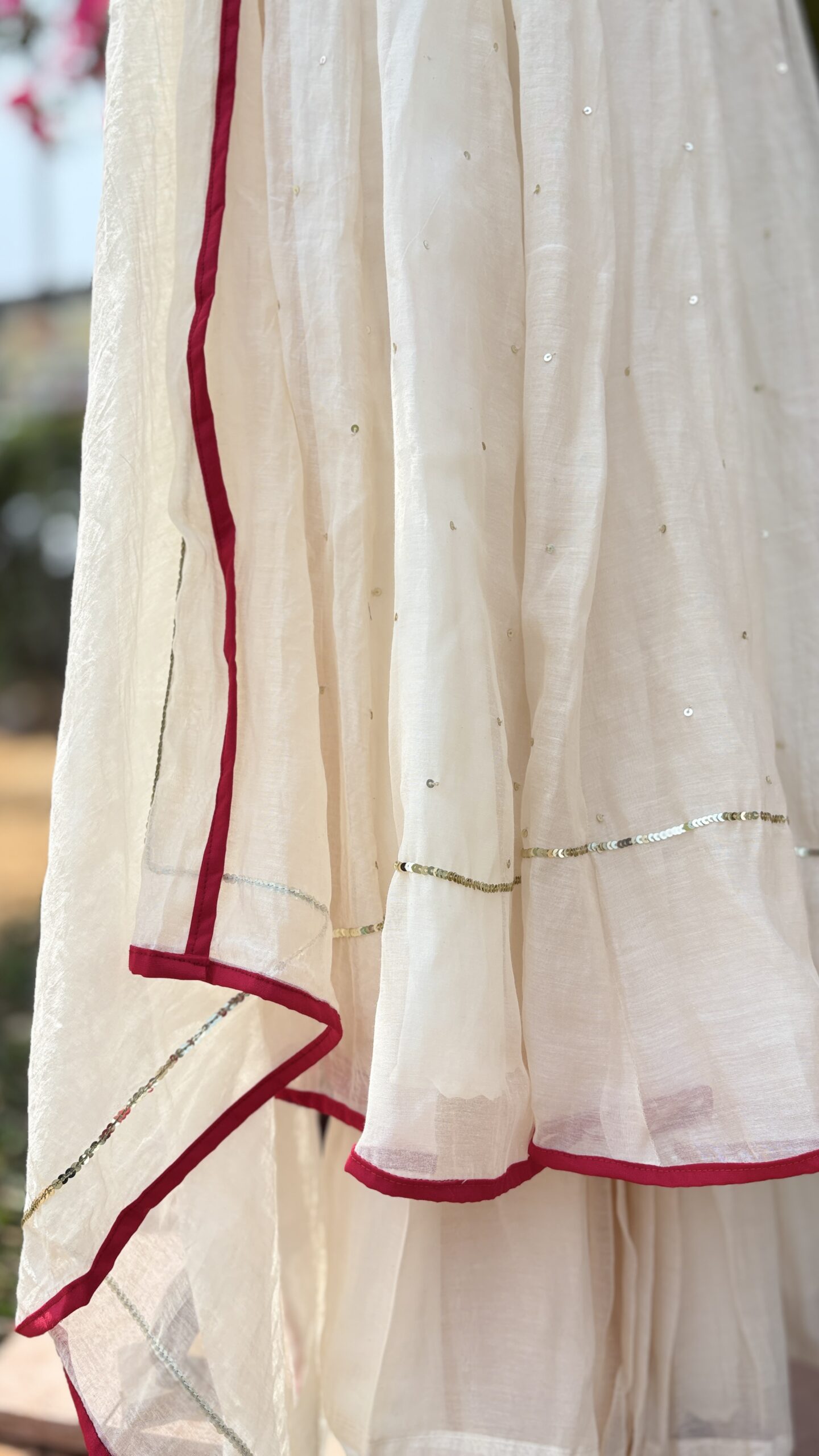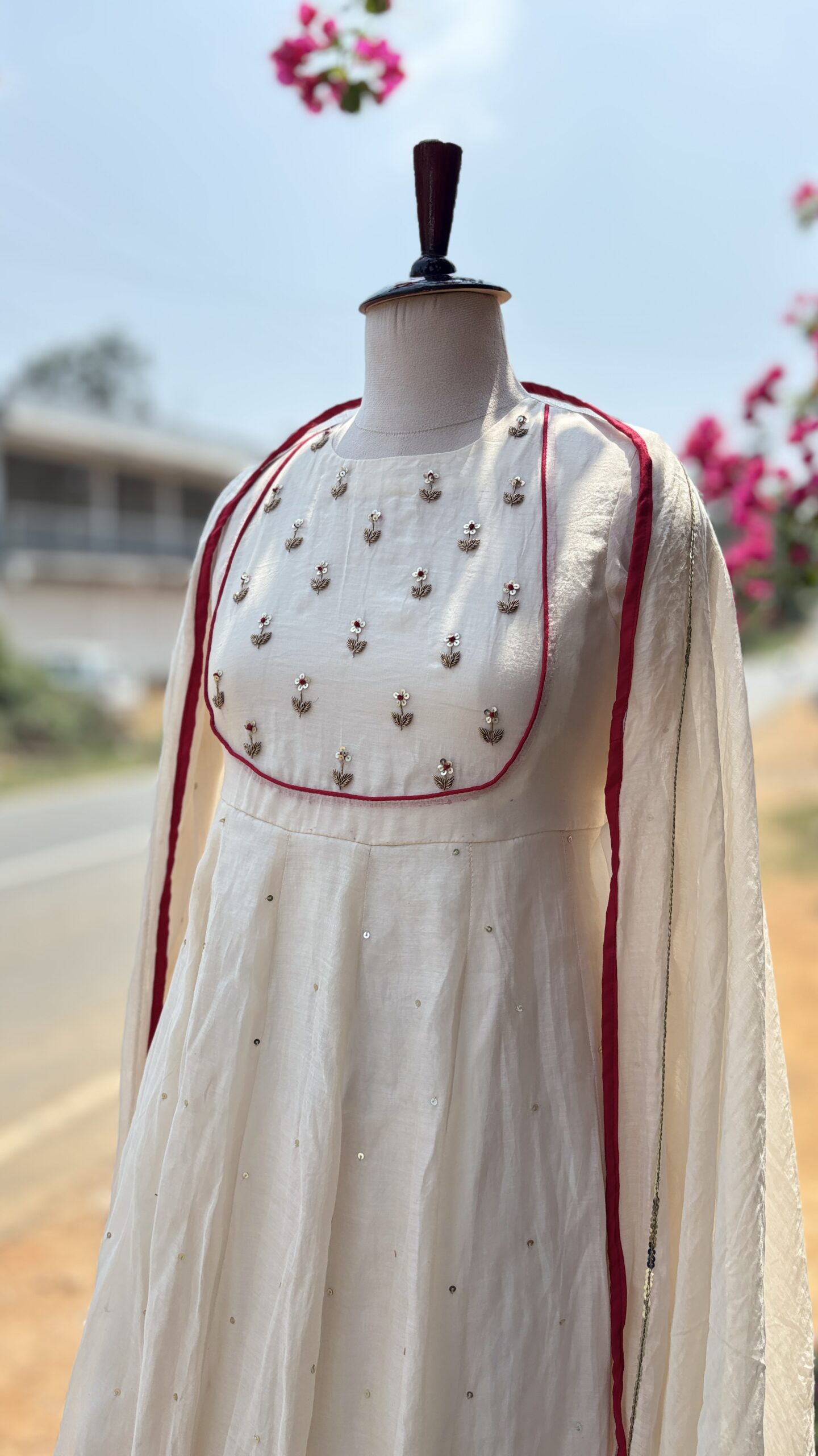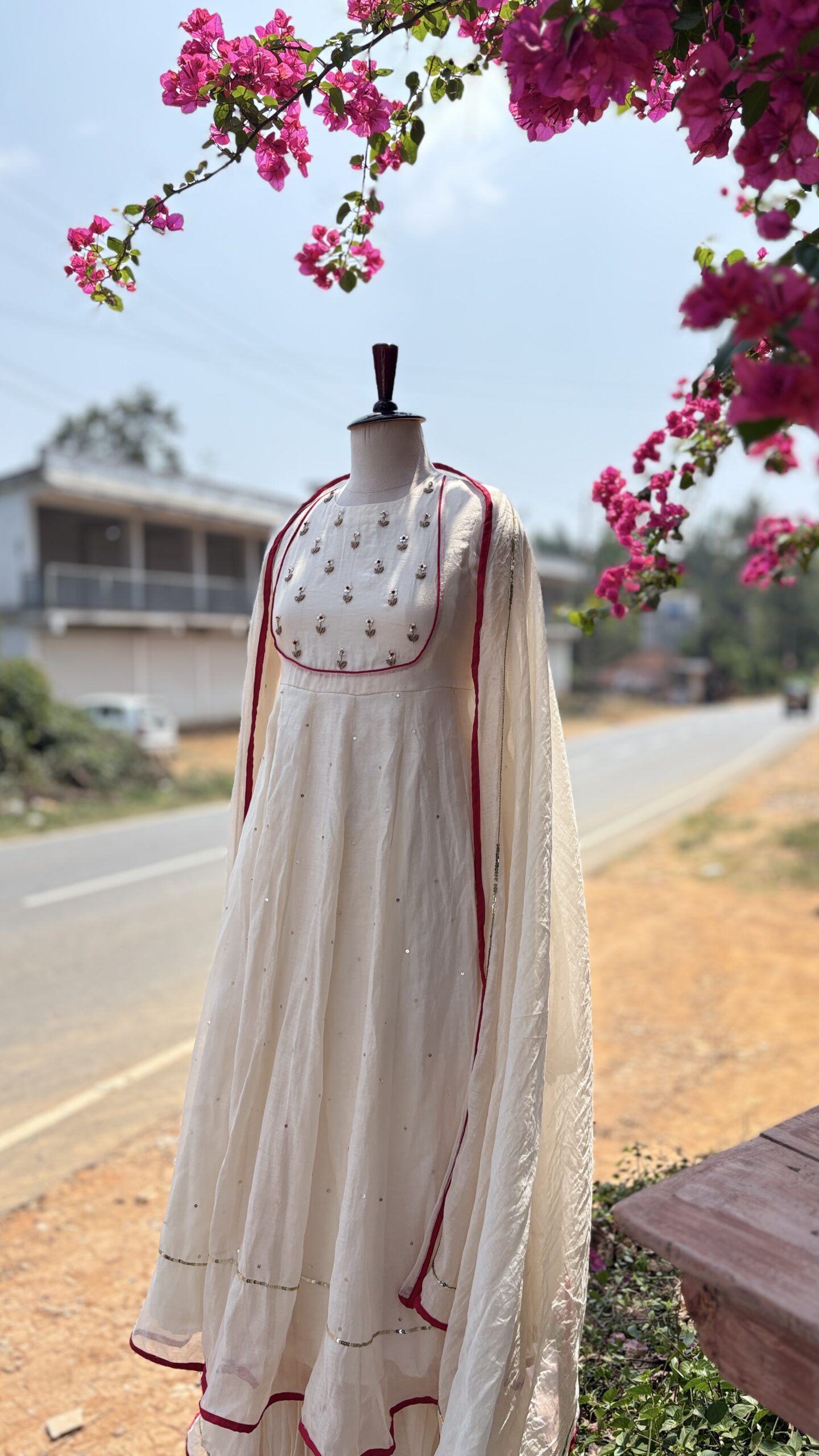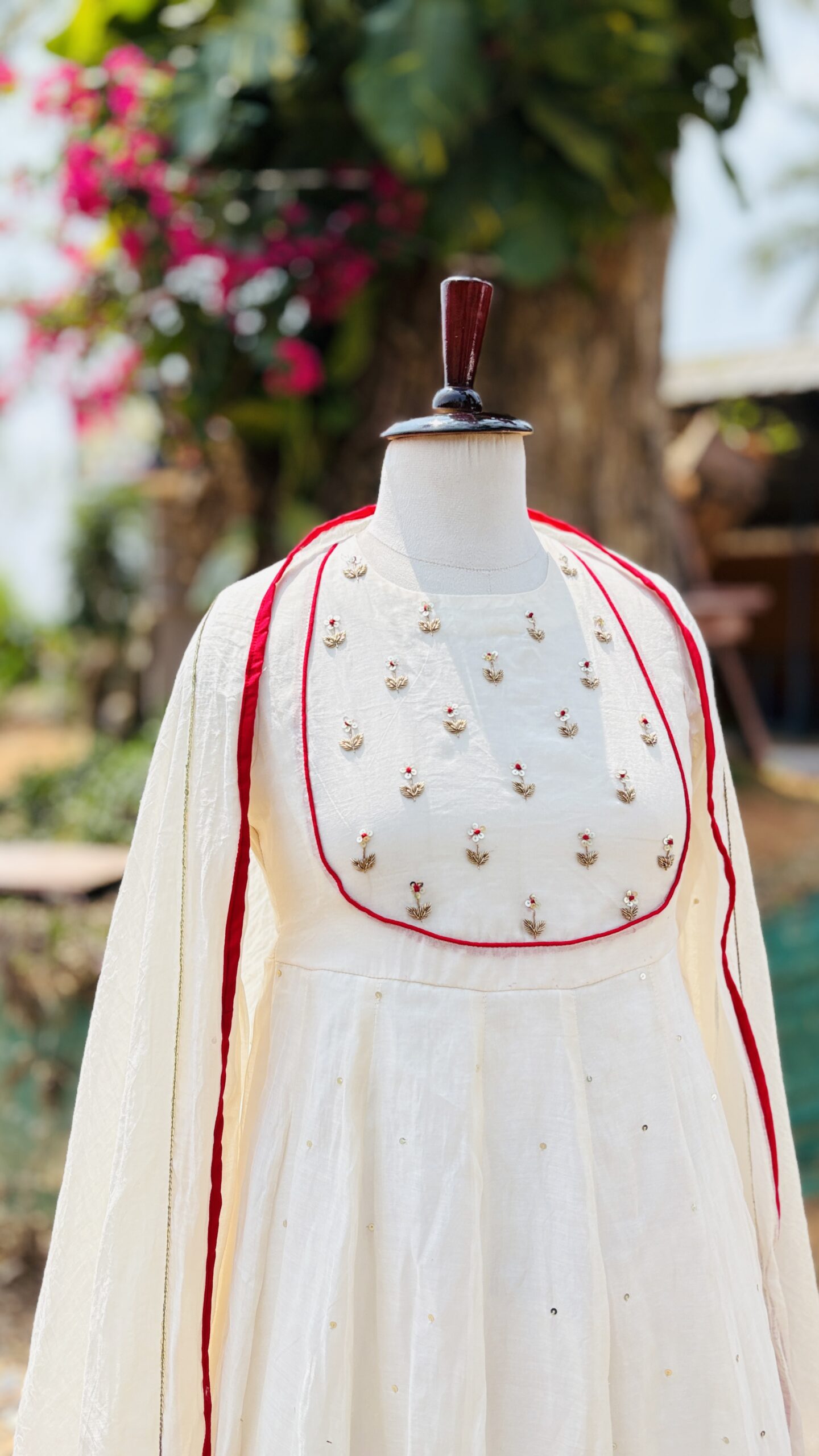 Mul chanderi of white kurthi set(top,bottom and duppata)