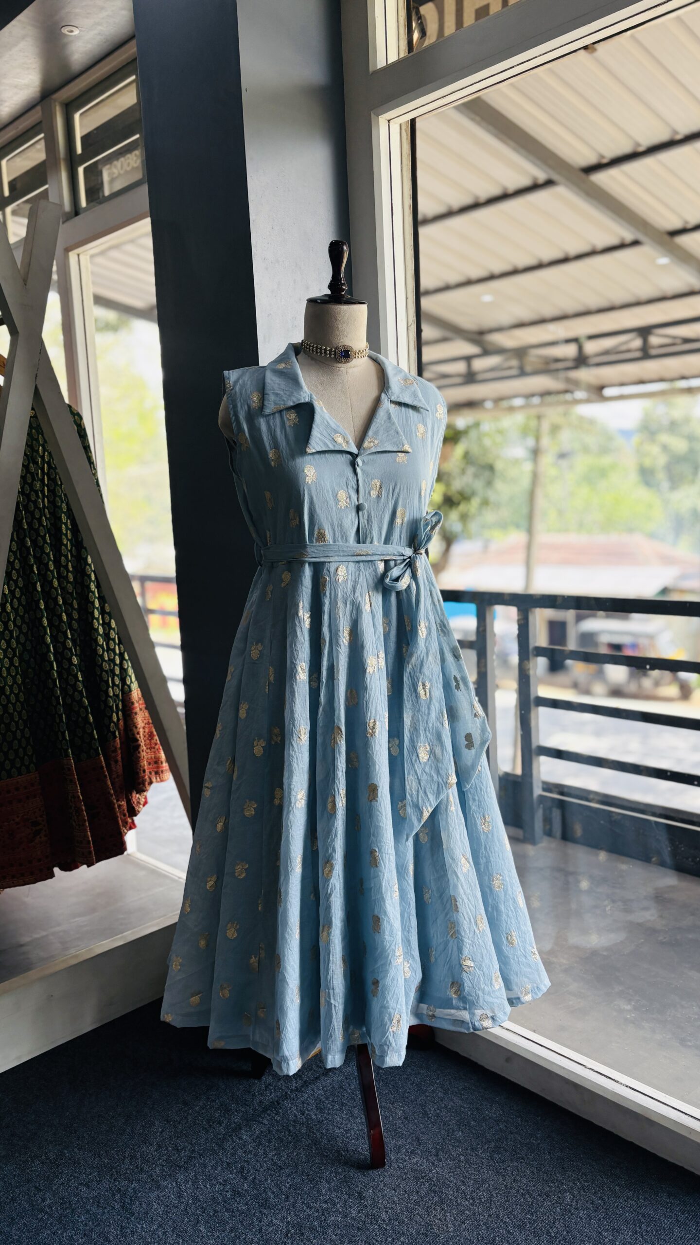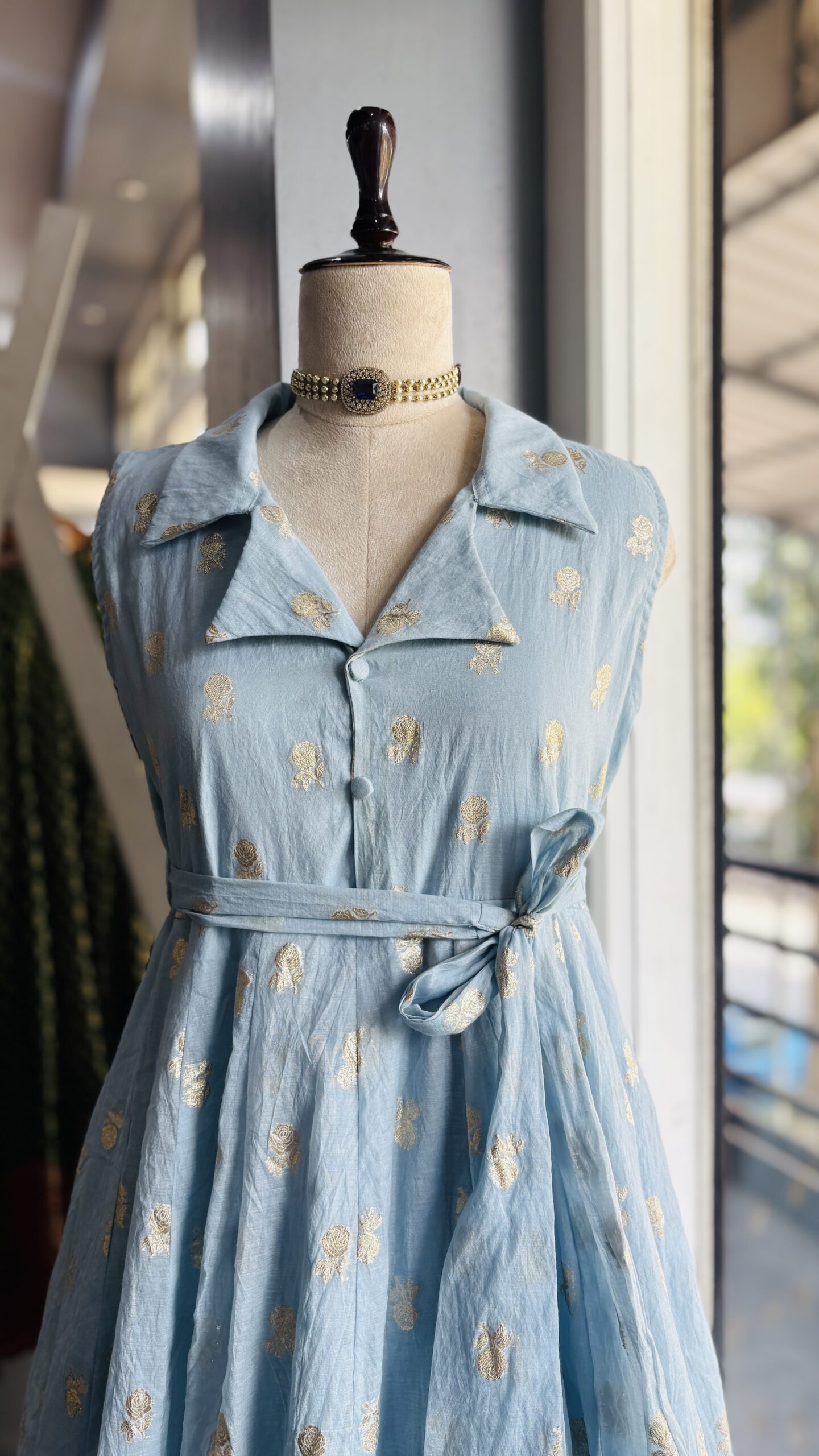 Pure chanderi panel frock with collar